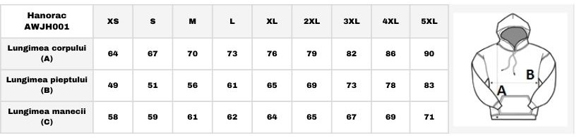 Tabel marimi Hanorac Unisex AWJH001